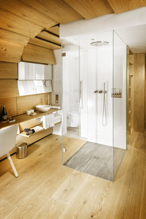 The 7132 hotel is located at the entrance to the picturesque village of vals in the grisons alps: